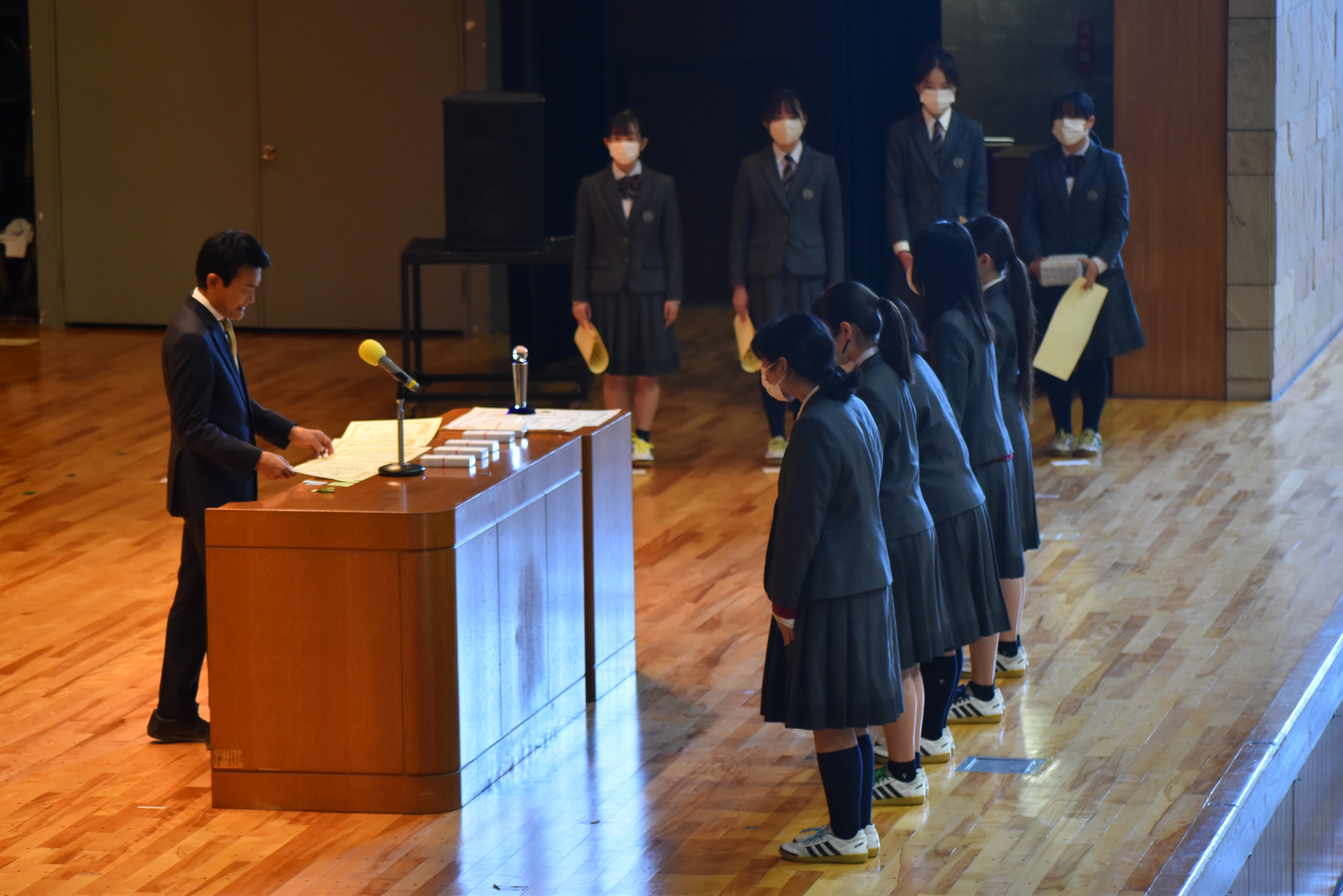 生徒指導部長からは、春休みの生活についてお話がありました。自分を大切にすることで、周囲の方も大切にできます。やっていいことと悪いことの区別をつけて行動をしましょう。自信と誇りをもちましょう。