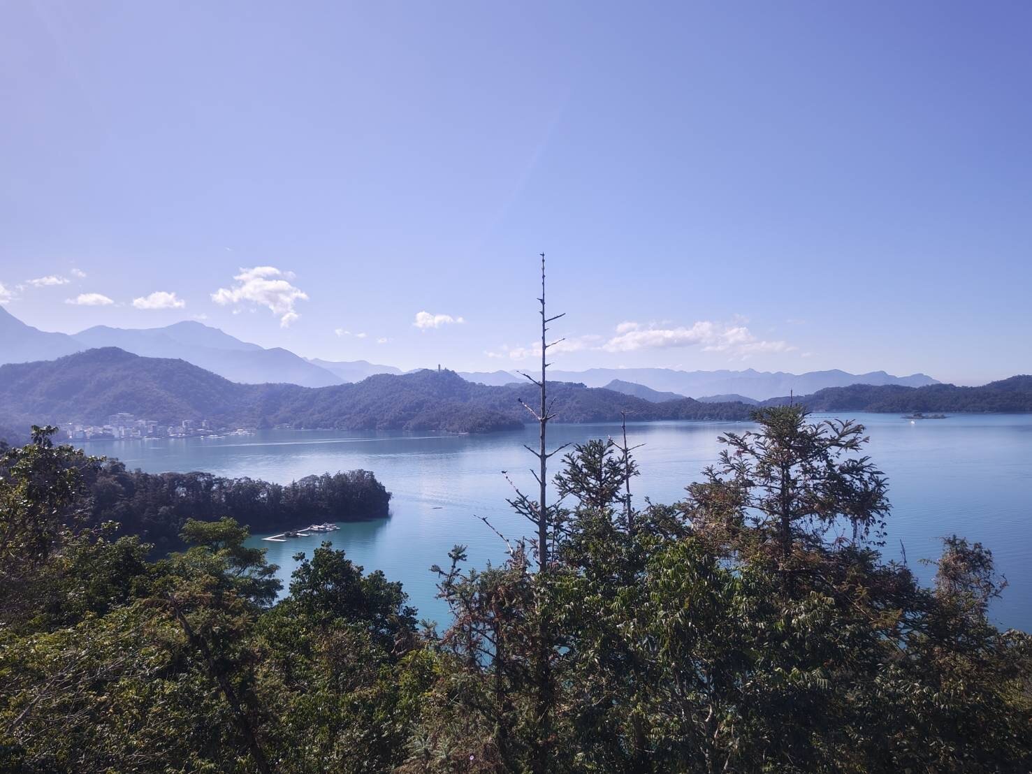 日月潭は外周33kmという大きな湖です。天候に恵まれ、碧色の湖面が美しく光る風景を見ることができました。