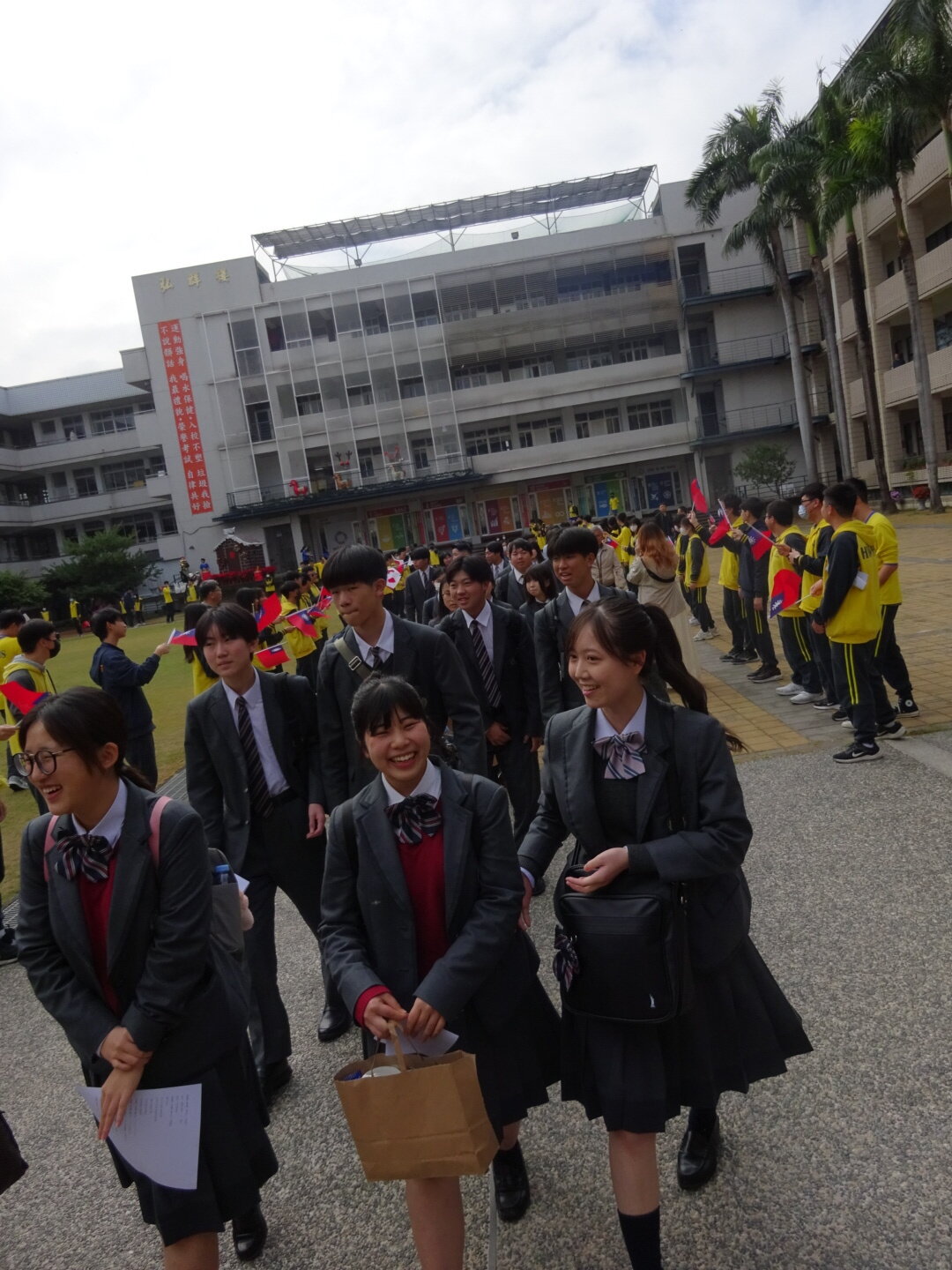 バスを降りる前からたくさんの学生が旗を振って待機してくれていました。まさに熱烈歓迎です。