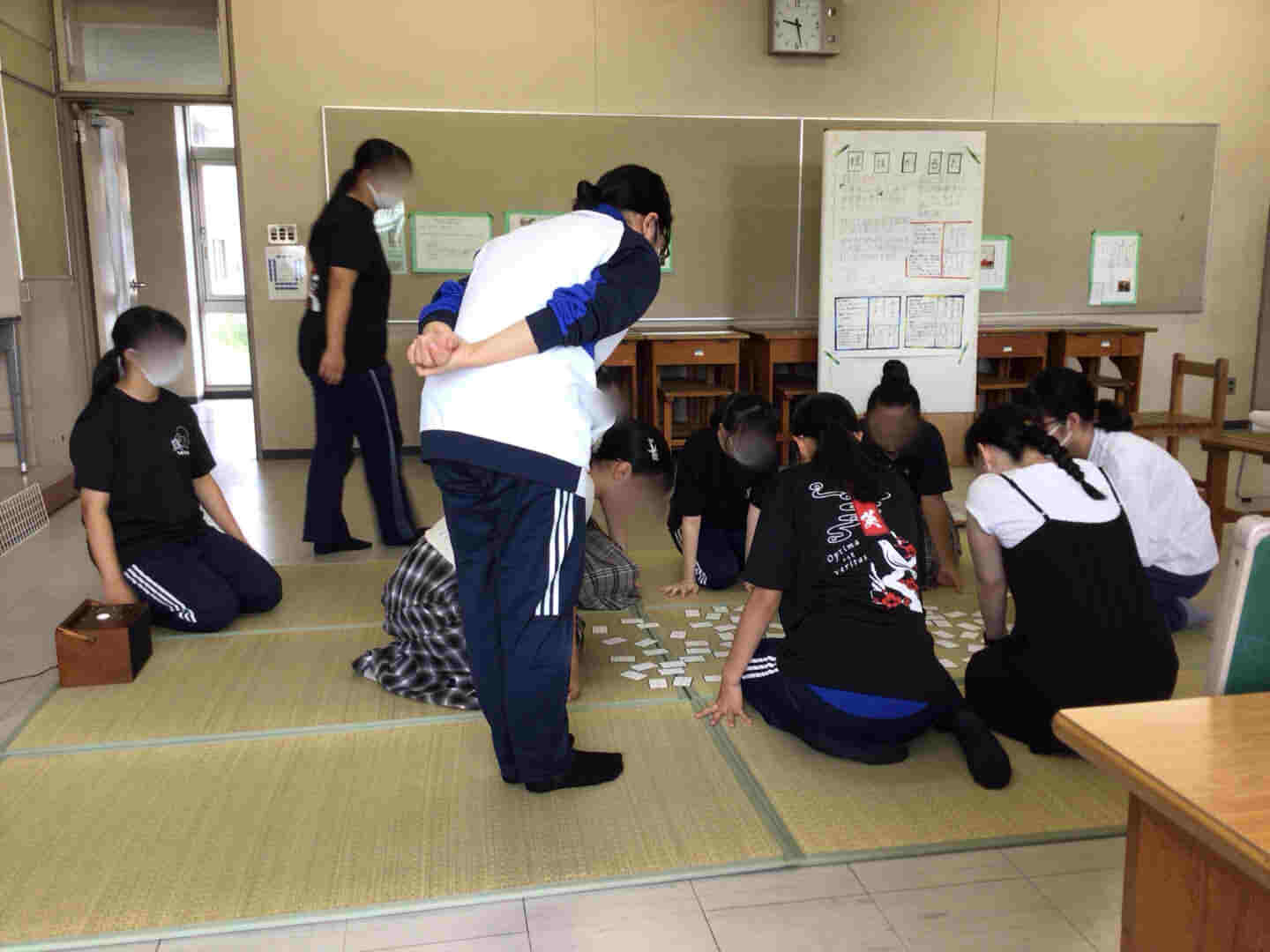 初心者が練習に使う「決まり字」かるたを使用して、散らし取り遊びを行いました。