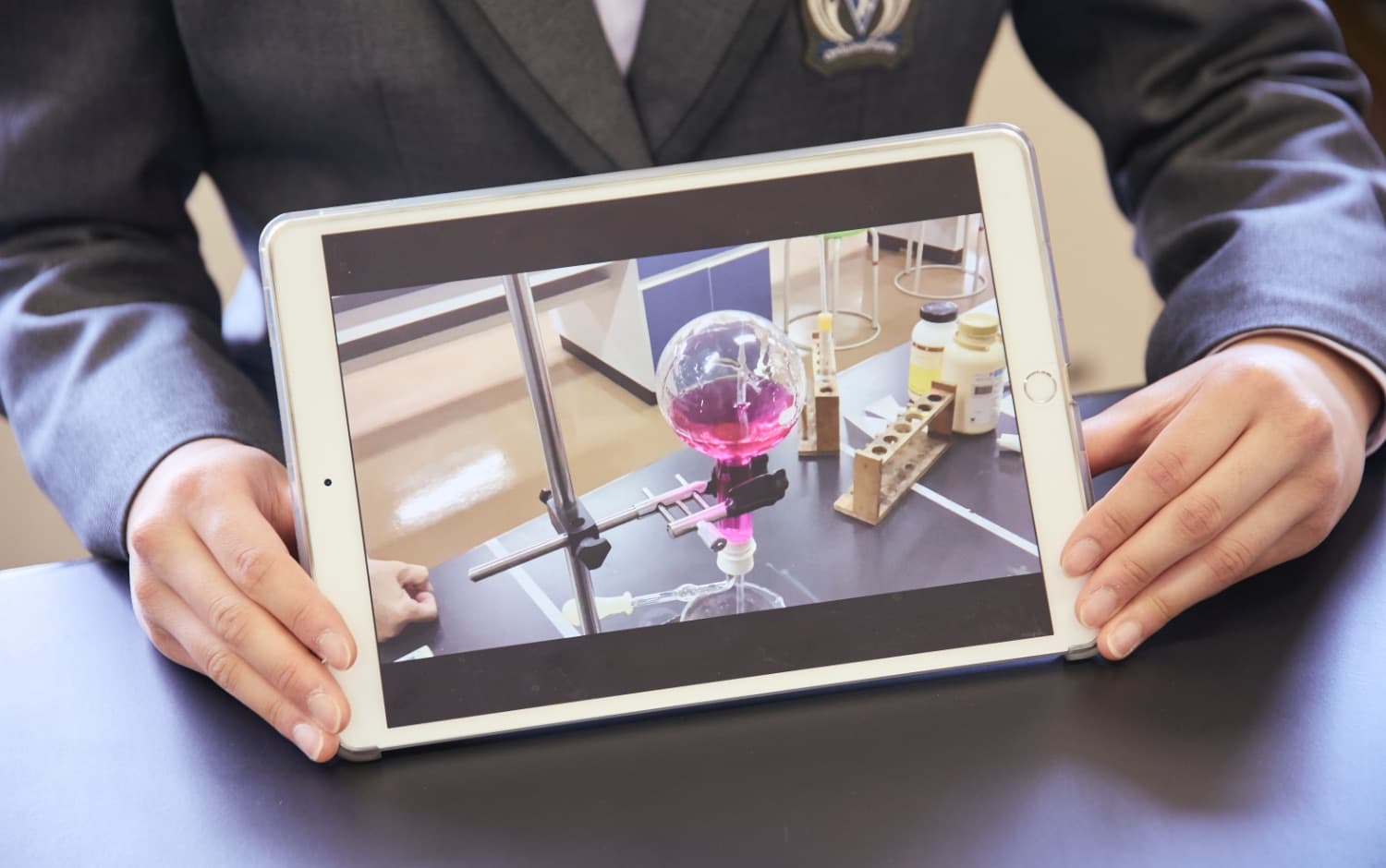 光英VERITASは、生徒一人ひとりが主体的に学ぶ姿勢を大切にしています。生徒全員が一人1台のiPadを持ち、授業前の資料配付、オンライン英会話、自宅での振り返り学習やプレゼン用の資料作成、仲間との意見共有など、すべての授業でICTを駆使した学習を展開しています。また、学校行事、部活動などの学校生活のあらゆるシーンで、ICTを活用することにより、主体的な学びの力を育成しています。